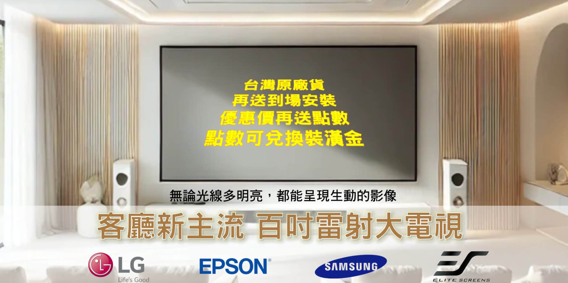 [會員專屬優惠歡迎詢價]LG CineBeam HU915QE 4K UHD+美國Elite Screens100吋16:9超短焦黑柵抗光幕 AR100H2-CLR4-ISF+ (台灣公司貨)