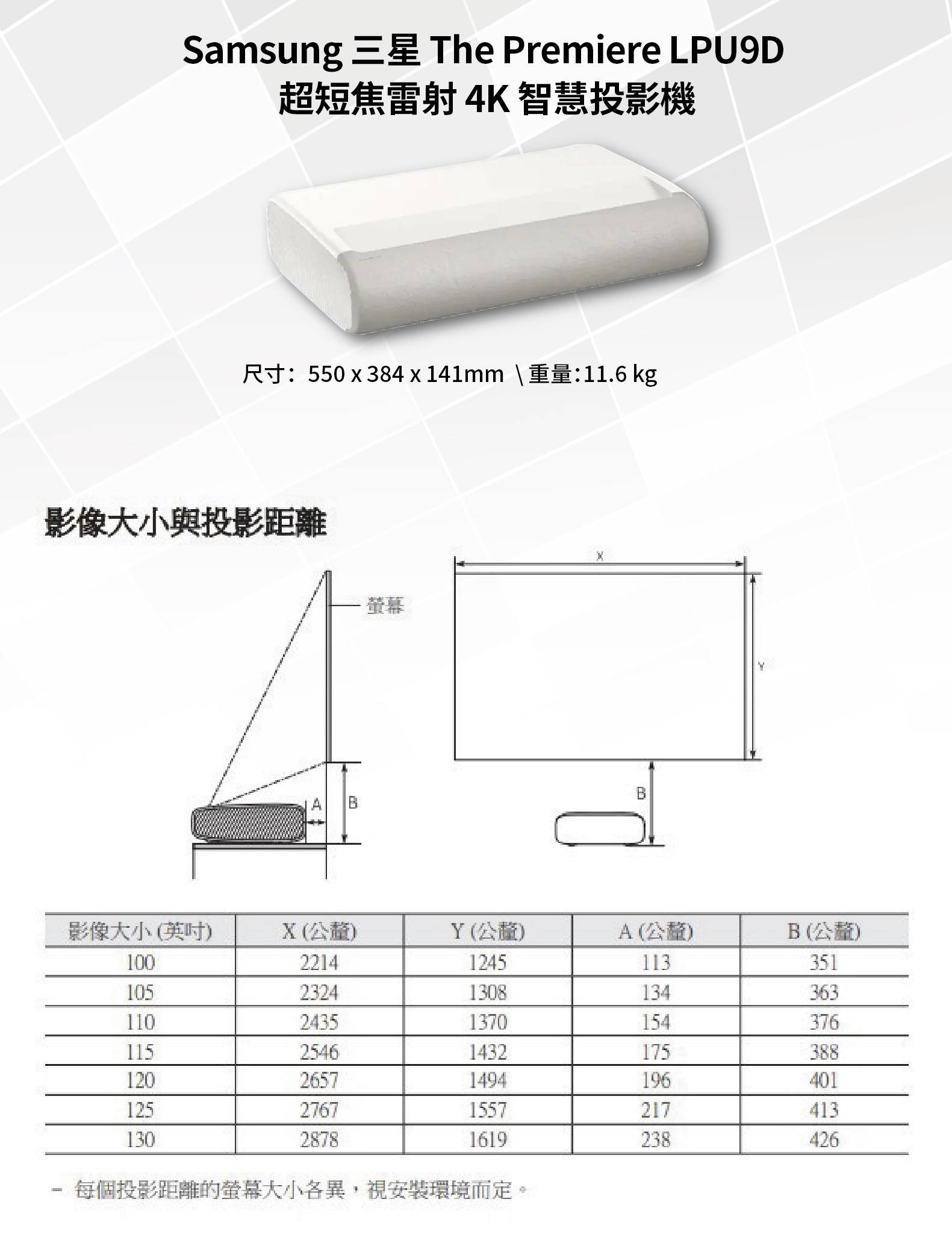 SAMSUNG LPU9D超短焦4K智慧雷射投影機