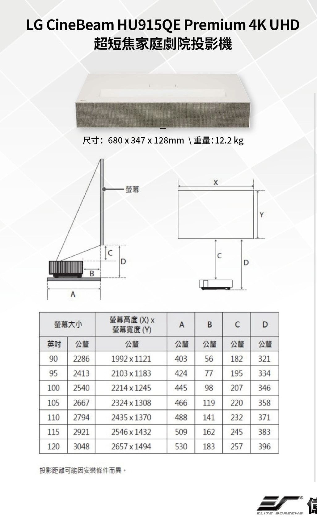 美國Elite Screens100吋16:9超短焦黑柵抗光幕 AR100H2-CLR4-ISF+