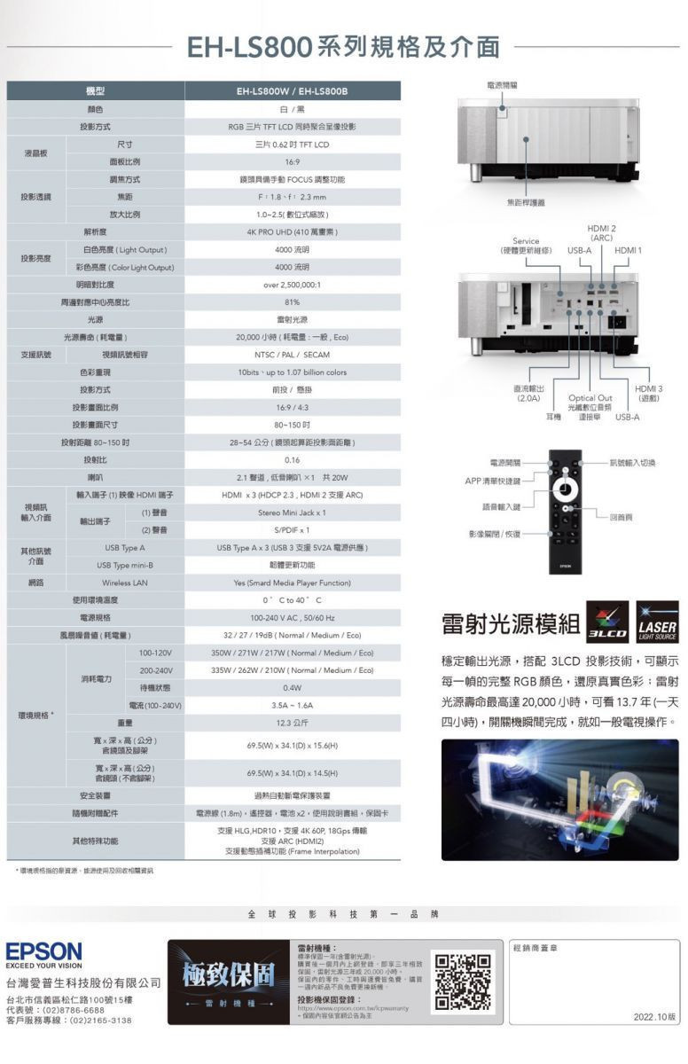 愛普生EPSON-LS800 4K PRO-UHD雷射